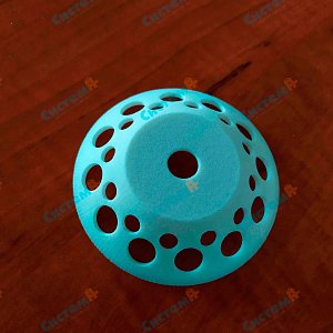 Изучив условия эксплуатации и задачи, которые будет выполнять деталь, наши технологи предложили использовать в качестве материала полиамид. Это крайне прочный, легкий и стойкий к износу вид пластика. Инженеры компании адаптировали чертежи заказчика под наше роботизированное оборудование, и мы сделали прототип полиамидной тарелочки методом печати по технологии SLS.